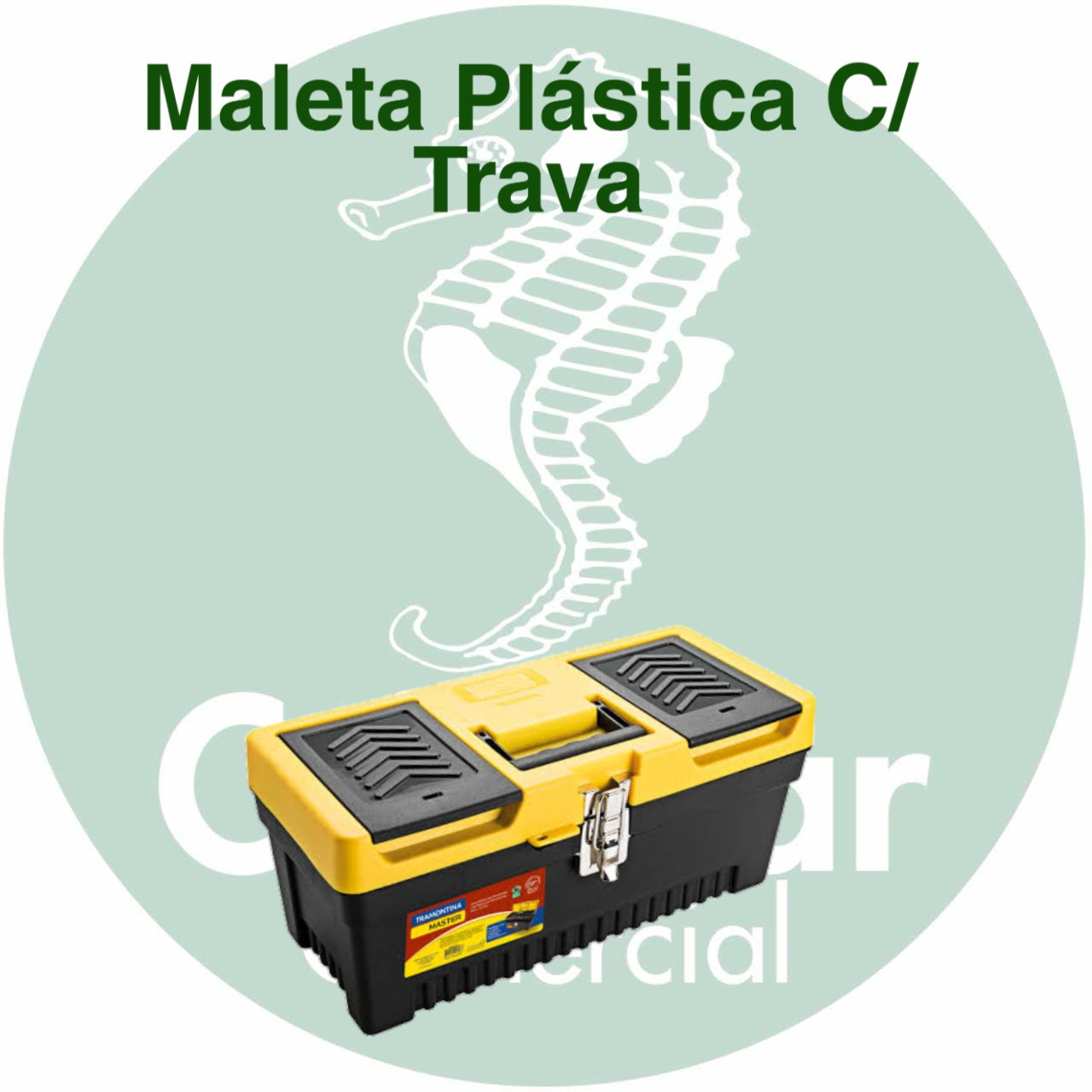 Caixa de Polipropileno, com bandeja auxiliar removível, três compartimentos externos. Com trava p/ cadeado.